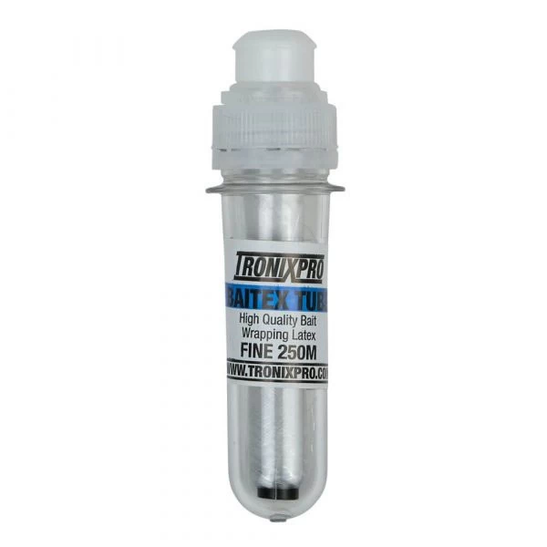 De Tronixpro Baitex Tube is een handige dispenser met Bait Elastic. Zo komt er geen vocht of vuil bij het elastiek en is het bijzonder gemakkelijk te hanteren.