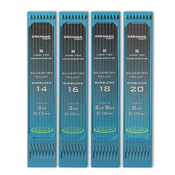 De Drennan Silverfish Pellet Hooklengths lenen zich perfect voor het vissen met pellets op witvis. Dankzij de lengte zijn deze onderlijnen ideaal voor het gebruik met de vaste hengel. De Drennan Silverfish Pellet Hooklengths worden geleverd op een handige winder, zo bent u er zeker van dat de onderlijnen in perfecte staat uit de verpakking komen.Â