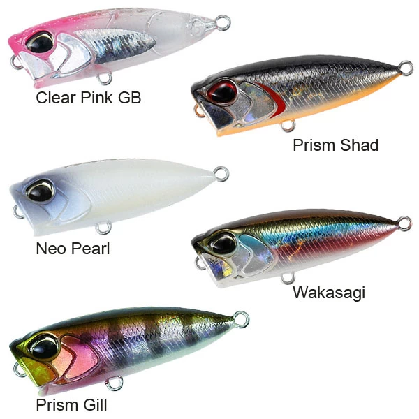 De DUO Pocopoco F is een kleine popper welke zeer geschikt is voor het oppervlakte vissen op baars. Dit oppervlakte aasje is prima te werpen ondanks het compacte formaat. De Pocopoco F beschikt over een platte voorkant welke het kenmerkende ‘plop geluid’ veroorzaakt.