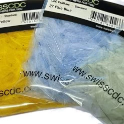 Swiss CDC Feathers Standard Grade, deze ‘Cul De Canard’ veren zijn de winterveren van de eend. Deze veren zijn in de winterperiode van een veel betere kwaliteit dan in de zomer. De Swiss CDC Feathers Standaard Grade zijn te verkrijgen in een brede range aan geverfde of naturel kleuren.