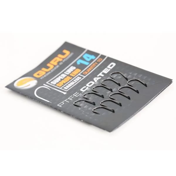 De Super LWG Hook – Spade End van Guru is een zeer agressieve haak met super scherpe punt. De haak is dundradig, voor een subtiele benadering en snelle penetratie, maar desondanks toch zeer sterk. De Super LWG Hook – Spade End is voorzien van een matte teflon coating en is weerhaakloos.