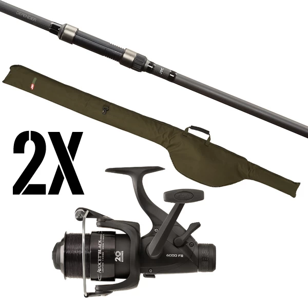 De JRC Defender Double Combo is een schitterende karperset die bestaat uit twee JRC Defender hengels, twee Mitchell Avocet vrijloopwerpmolens met nylon lijn en twee aparte sleeves om de hengels opgetuigd in te vervoeren. De hengels hebben een testcurve van 3 lb, hierdoor zijn ze perfect voor allround gebruik.Â