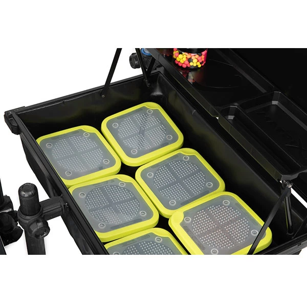 De Matrix Pro Feeder Tray is speciaal ontworpen voor het vissen in wisselende weersomstandigheden. Dankzij de deksel staat het aas snel droog wanneer het gaat regenen. Daarnaast zit er nog een tray in om bijvoorbeeld boilies of kleinere accessoires op te zetten. De Matrix Pro Feeder Tray is voorzien van speciale scharnieren voor het openhouden van de deksel en past op poten van 25, 30 en 36 mm.