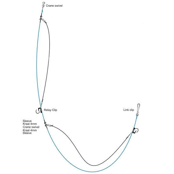De Midnight Moon Platvisonderlijn met Relay Clip is voorzien van drie Night Hawk haken die geclipt kunnen worden dankzij de Relay Clips.