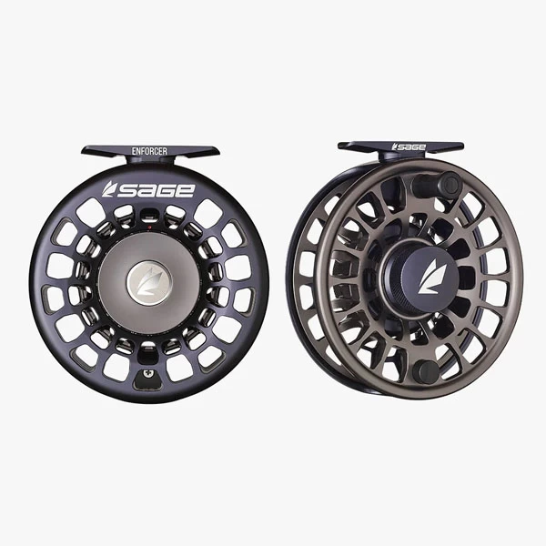 De Sage Enforcer Reel is een zoutwater vliegenreel welke gebaseerd is op de Thermo bluewater reels. Deze large arbor vliegenreels hebben een slipkracht welke 50% zwaarder is dan de andere vliegenreels in de Spectrum familie. De Sage Enforcer Reel is er in een Tempest Blue en Stealth kleur wat mooi aansluit bij de R8 vliegenhengels van Sage.