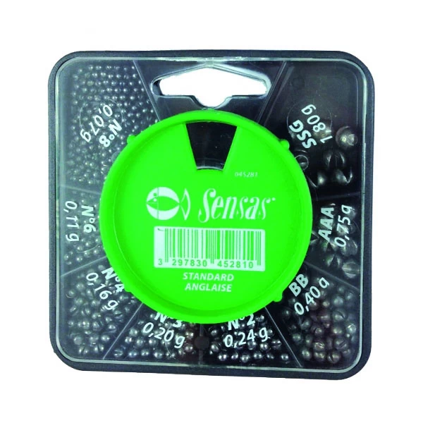 De Sensas Looddoos Gemengd Match is een handig looddoosje met loodhagels in acht gangbare gewichten.