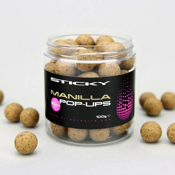 De Sticky Baits Manilla Pop-Ups zijn qua samenstelling en ingrediënten identiek aan de gelijknamige boilies, hierdoor zijn ze perfect te gebruiken i.c.m. met alle andere producten uit de Manilla Range. Deze pop-ups zijn rijk aan natuurlijke zouten en suikers en beschikken net als de boilies over een natuurlijk vanille extract wat zorgt voor een ongekende aantrekkingskracht. De Sticky Baits Manilla Pop-Ups zijn 100% vis-vriendelijk en perfect uit te balanceren.
