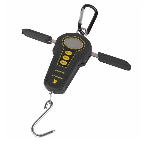 De Strategy Digital Scale is zeer compact van formaat en kan probleemloos tot 50 kg wegen. Deze weegschaal is voorzien van een groot en gemakkelijk af te lezen scherm, zelfs met een felle zon. De Strategy Digital Scale is spatwaterdicht en beschikt over stevige uitklapbare armen en een karabijnhaak zodat de weger eenvoudig aan een driepoot gehangen kan worden.