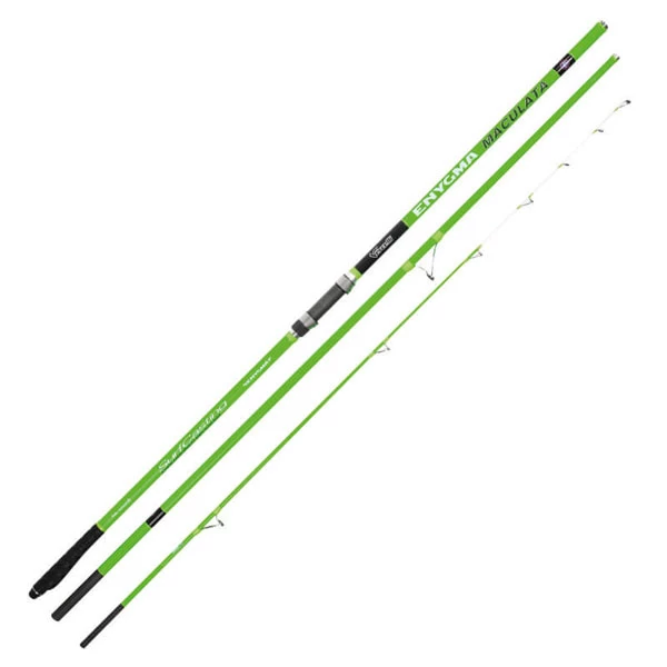De Vercelli Enygma Maculata is een mooie strakke hengel voor de strandvisserij. De Enygma Maculata is gemaakt van carbon en met Fuji LC Lowrider geleideogen afgebouwd. Deze hengel heeft een ideaal werpgewicht van 120 gram, wanneer er met dit gewicht geworpen wordt, kunt u de grootste afstand behalen.